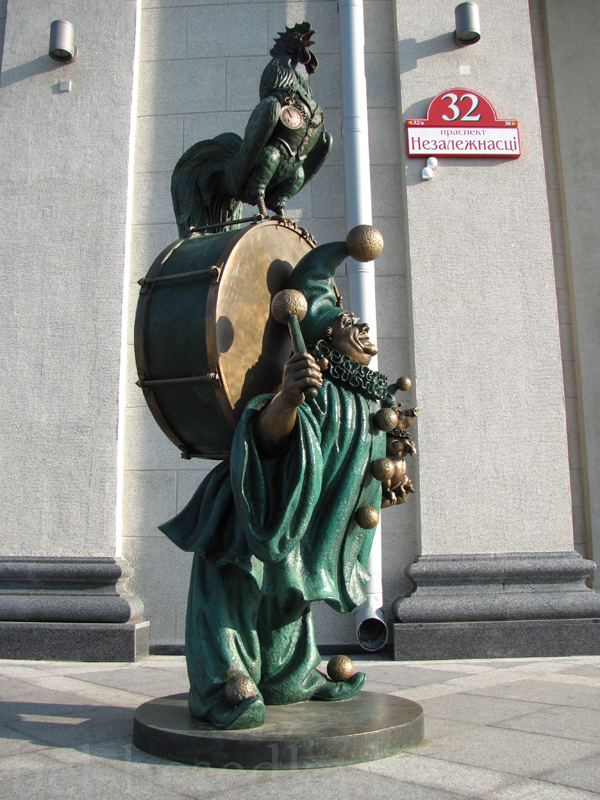 Скульптура   «Клоун и петух с поросёнком» возле входа в минский цирк